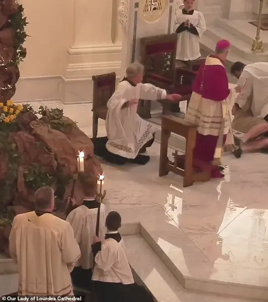 Shocking Attack on Priest at Church in Washington State: A disturbing video shows a man attacking Father David Gaines and Bishop Thomas Daly during a prayer service at the Cathedral of Our Lady of Lourdes in Spokane. The attacker, Joshua James Sommers, was a church-goer who suddenly punched Father Gaines while he was kneeling beside the bishop. This unexpected attack left everyone in attendance shaken and shocked.
