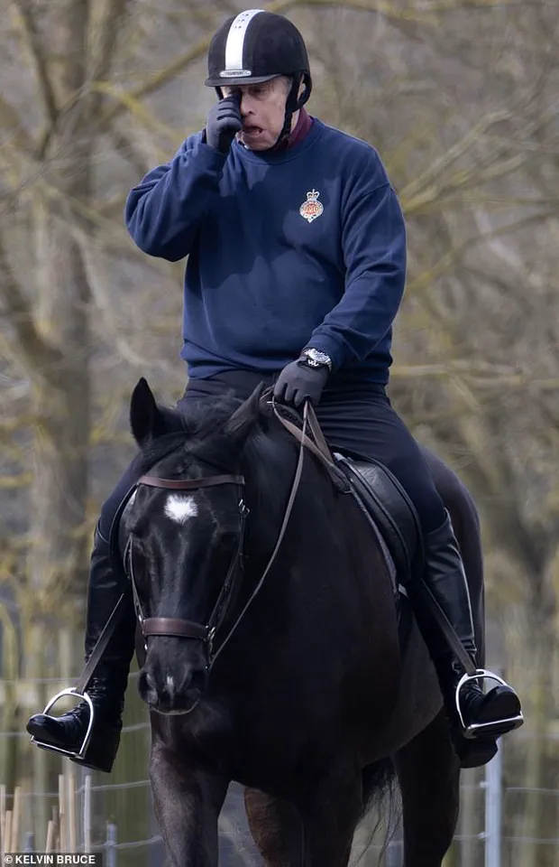 He accompanied this casual attire with black jodhpurs and riding boots, along with a black helmet. Prince Andrew was seen driving himself between his residence and the riding area on the estate. In one photograph, he appeared to be smiling, suggesting a content mood despite recent legal challenges.