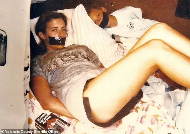 The photograph captured two individuals bound and gagged inside what appeared to be the back of a white van.