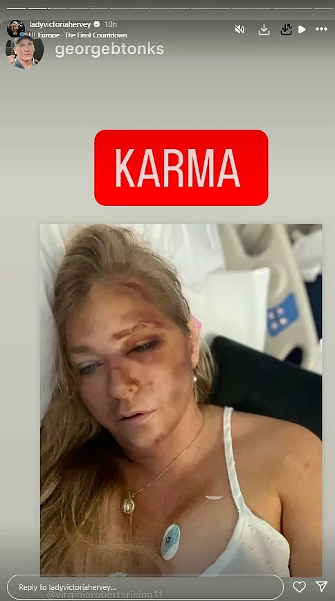 Lady Victoria Hervey posted this response to the bruised and bloodied image originally posted by Virginia Giuffre