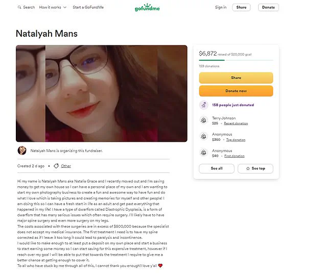 In an effort to fund her future endeavors, including spinal surgery that costs ‘in excess of $500,000’, Natalia launched a GoFundMe page in January 2024.