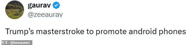 One commenter on X joked that the introduction of tariffs was a ‘masterstroke’ to promote non-Apple products