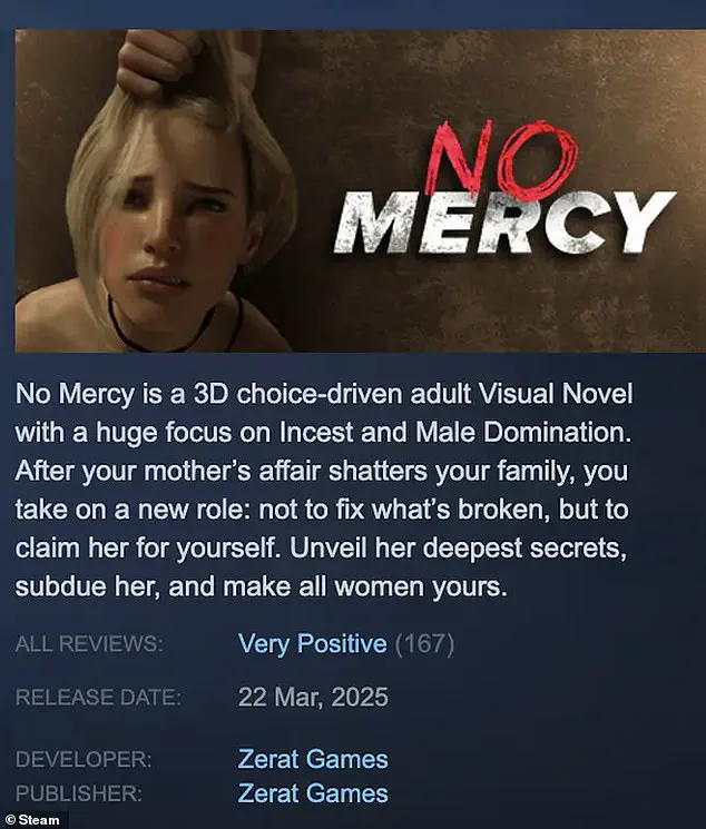 A horrific rape and incest video game, titled ‘No Mercy’, has sparked fury for encouraging players to be ‘women’s worst nightmare’.