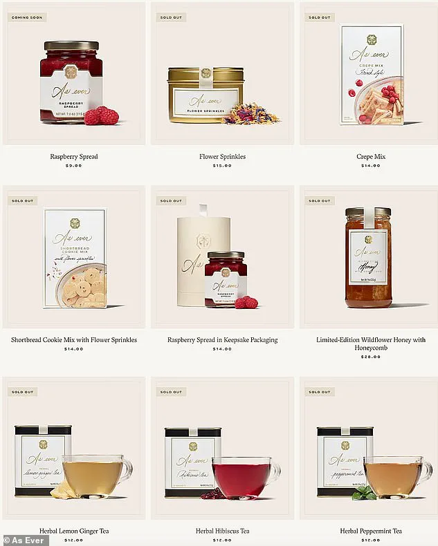 In a move that has raised eyebrows and criticism alike, Meghan Markle recently launched her lifestyle brand ‘As Ever,’ selling goods such as shortbread and crepe mixes for $14 each, alongside various herbal tea blends at $12 per mix.