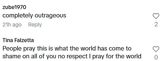 Commenters expressed strong disapproval; one wrote: ‘People pray, this is what the world has come to.