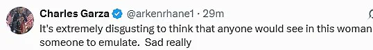 I pray for the world,’ while another said: ‘This isn’t okay.’ A commenter pointed out a double standard in society’s reaction by noting, ‘Imagine the uproar if a man said this?!’
