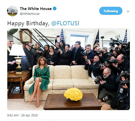 On her 49th birthday, however, the White House chose an awkward picture of Melania sitting by herself in the Oval Office during President Donald Trump’s meeting with Czech Prime Minister Andrej Babiš.