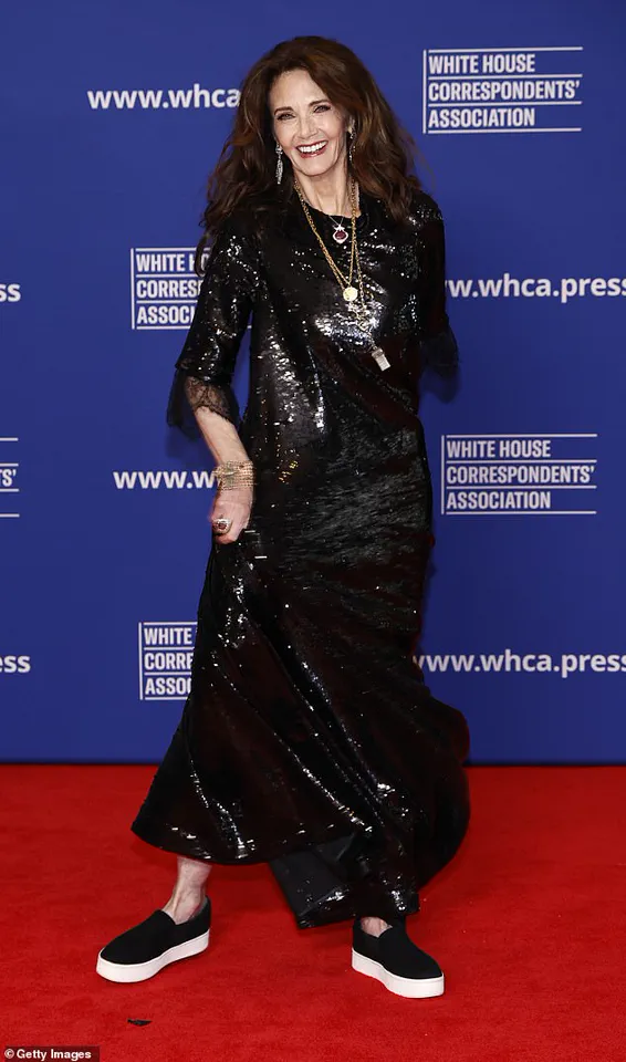 Singer Lynda Carter arrived at the 2025 White House Correspondents’ Dinner wearing head-to-toe sparkles. The over-the-top black frock hung awkwardly on her frame. She paired it with some platform sneakers that really toned it down