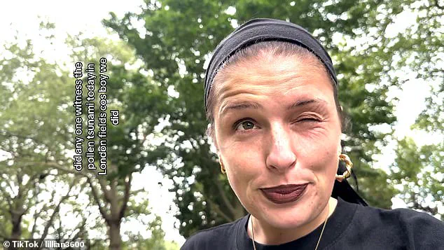 A TikTok user described the scene at London Fields in Hackney as a ‘pollen tsunami,’ stating that the air was so thick with pollen it felt like ‘choking even though you don’t have hay fever.’