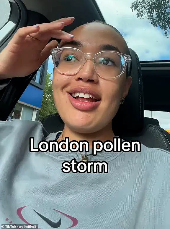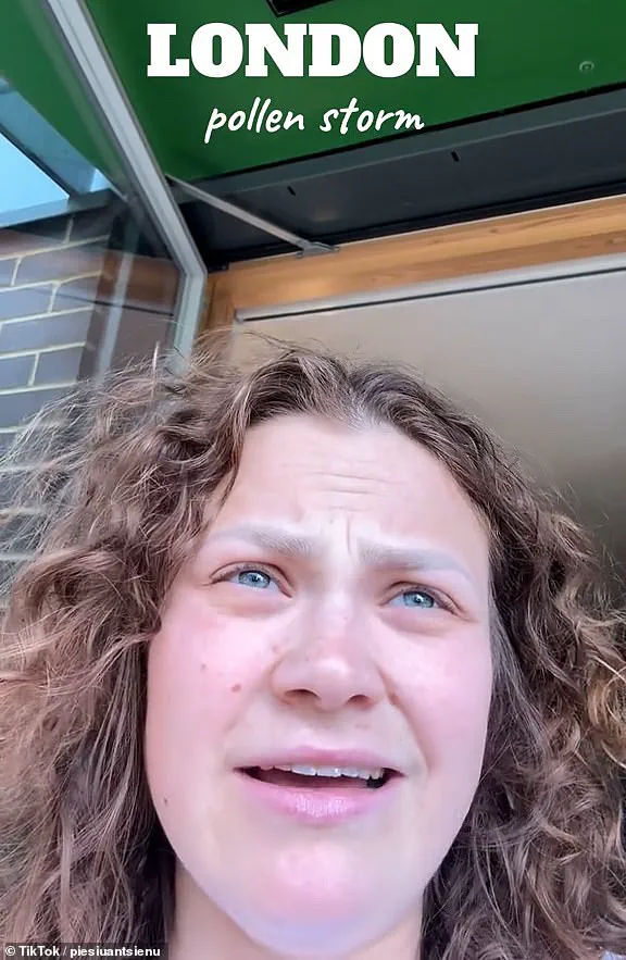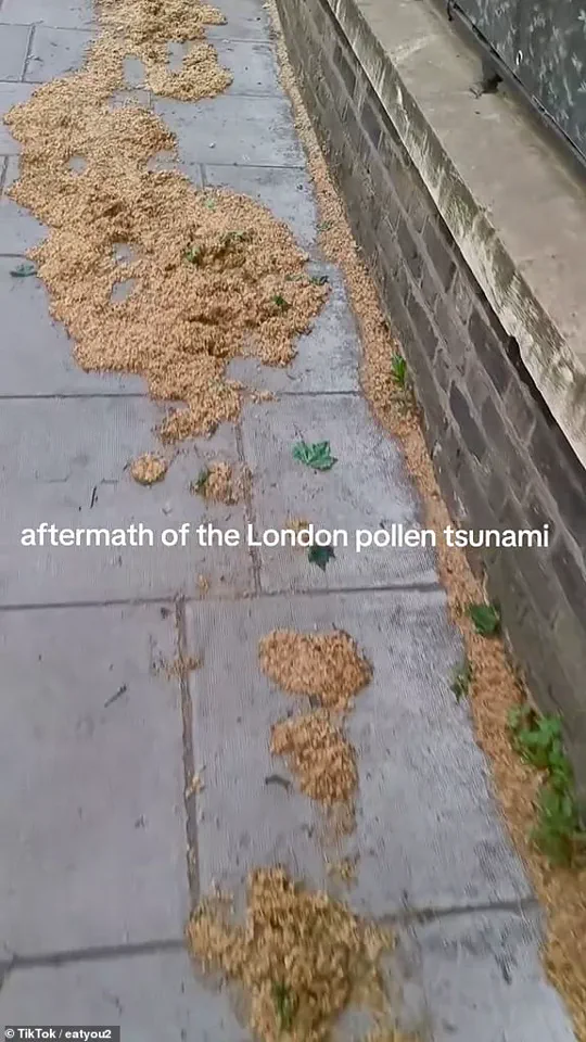 A TikTok user recently shared a startling experience, describing how high pollen levels in London had left a visible residue on their hair and clothing. ‘It was like dust had settled on everything,’ they said, adding that the situation had made them feel ‘physically uncomfortable and anxious about going outside.’ The post quickly went viral, sparking a wave of similar complaints from Londoners grappling with the effects of an unusually severe pollen season.