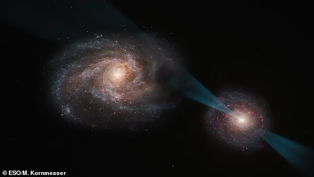 This beam, fueled by the immense gravitational forces of the black hole, is not merely a byproduct of the quasar’s activity but a calculated and devastating attack that has left its target in disarray.