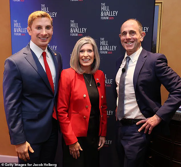 Co-Founder Hill & Valley Forum Jacob Helberg, Senator Joni Ernst and Managing Director Khosla Ventures Keith Rabois attend the Hill & Valley Forum 2025 on April 30, 2025