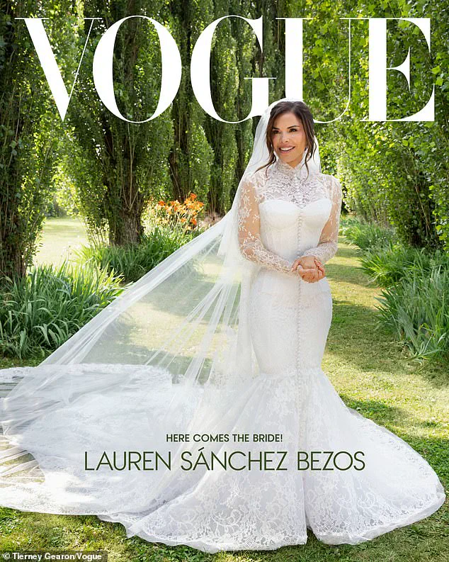 Lauren Sanchez pictured on the cover of Vogue in the Dolce & Gabbana wedding gown she wore to marry Jeff Bezos