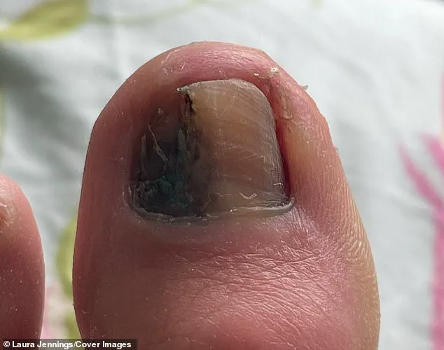 Laura Jennings, 40, from Leeds, first noticed a dark streak beneath her toenail in April 2022, but thought nothing of it.