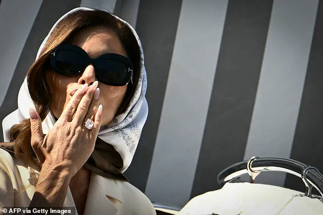 The ring’s platinum band, adorned with a dazzling cluster of diamonds, has become the centerpiece of Sanchez’s ensemble, paired with a Schiaparelli couture gown from the 2025 collection, which alone is estimated to cost $100,000.