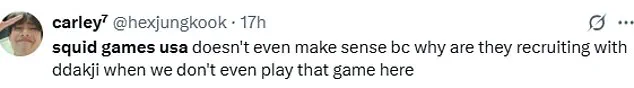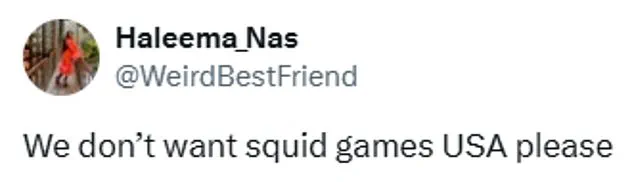 Some fans even expressed outright opposition to the idea, with one user writing, ‘We don’t want Squid Games USA please.’
