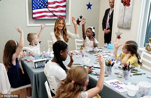 During the appearance, Melania engaged in a variety of activities with the children and their families, including painting rocks and creating other Fourth of July-themed arts and crafts.