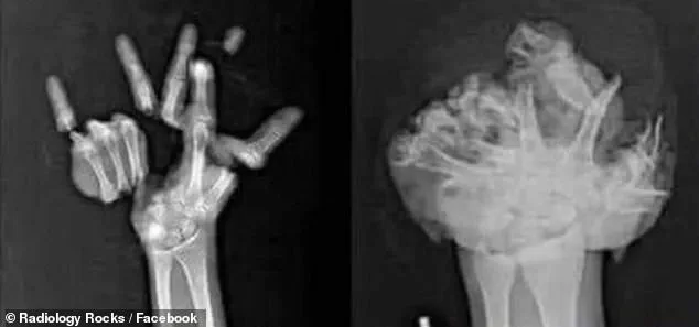 Another victim’s hand was completely shattered, leaving it in six distinct pieces. ‘This is the last weekend someone in the USA will have all 10 fingers,’ the Facebook post noted—a grim but accurate warning.