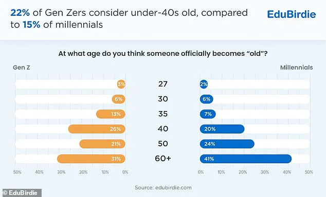 A new survey has sparked a conversation about societal perceptions of aging, revealing a startling shift in how younger generations define ‘old age.’ Conducted by EduBirdie, the study polled 2,000 members of Gen Z and young millennials to determine at what age they believe youth begins to fade.