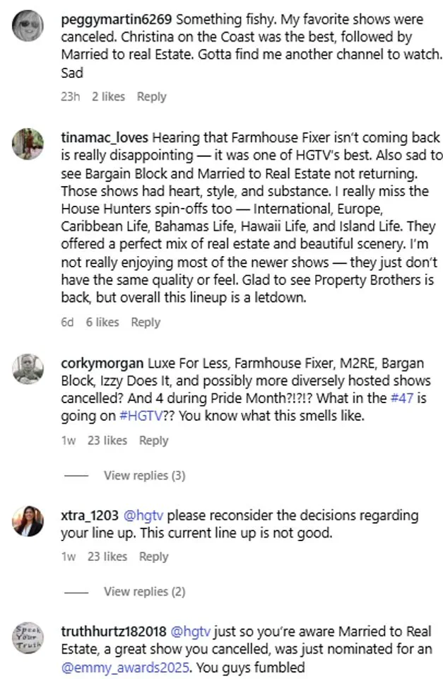 Furious fans made their feelings known about the cull underneath HGTV’s last Instagram post