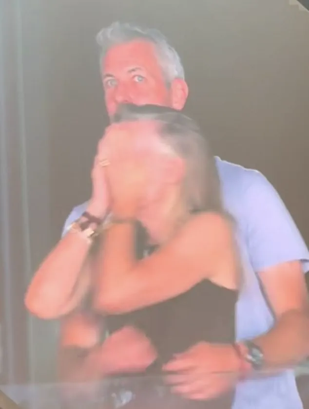 The couple were seen covering their faces, with Byron, the head of the AI startup Astronomer, diving out of view and Cabot turning away from the camera