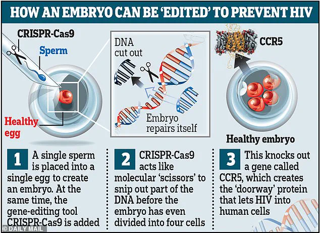 While some see it as a groundbreaking step toward eradicating conditions like cancer, Alzheimer’s, and AIDS, others warn of the ethical and scientific risks involved. ‘This treatment has a lot of promise for tackling conditions such as cancer, Alzheimer’s, cystic fibrosis, heart disease, diabetes, haemophilia, and AIDS,’ one expert said, though they quickly added, ‘But the road to safety and efficacy is long, and we must proceed with caution.’