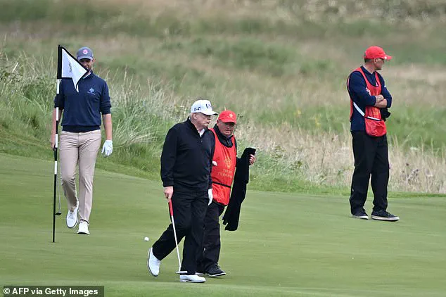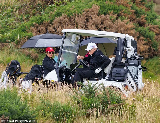 His love affair with the Turnberry golf course in Scotland, a place he has long championed as ‘the best in the world,’ has taken center stage in his itinerary. ‘Everybody wants to be a Turnberry,’ he boasted, even bragging about the Royal & Ancient Golf Club’s recent upgrades to the course’s electrical infrastructure.