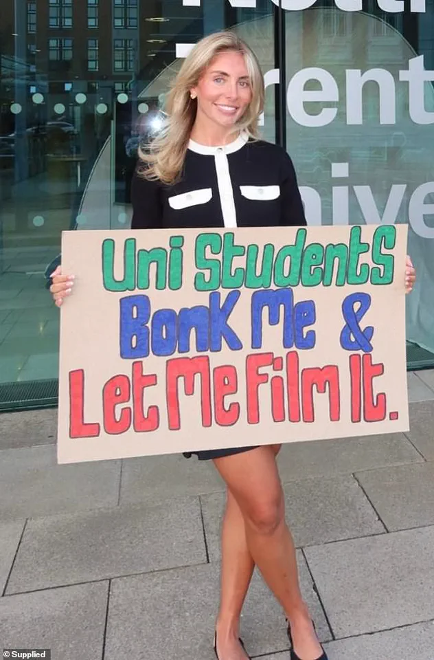 That’s one way of putting it: it wasn’t long before she began to tout her services to ‘barely legal’ students, holding up placards outside campuses on Australia’s Gold Coast emblazoned with the phrase ‘Bonk me for free and let me film it.’ ‘Lots of young men had contacted me asking to have sex, and I started to think—why not make realistic content?’ she says of her decision. ‘Because all my content had been scripted, faked, typical porn.