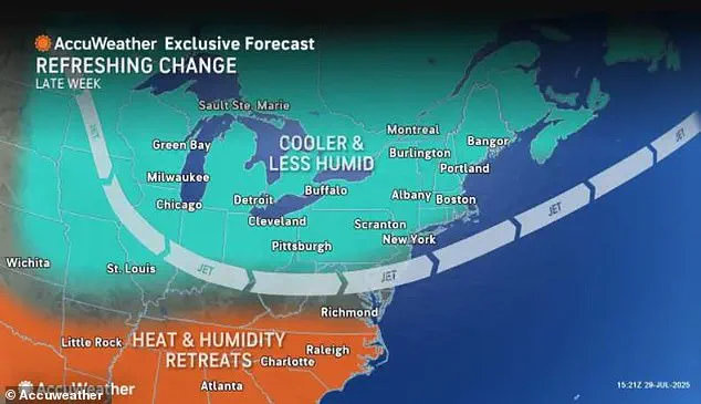 Weather.com meteorologist Caitlin Kaiser said: ‘Taking a peek even further into the first week of August, cooler-than-average temperatures are expected to stick around across much of the Great Lakes, Midwest, and Northeast.’ This prolonged period of cooler weather could provide much-needed relief for residents who have been grappling with the effects of an unusually hot summer, but it also underscores the unpredictable nature of weather patterns in a changing climate.
