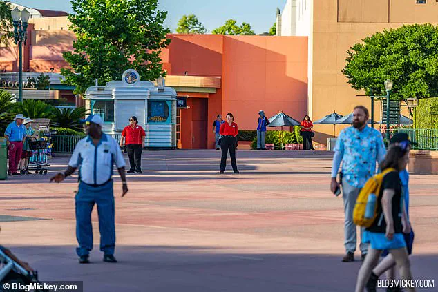 The ‘direct walking path’ that had been visible on previous visits was now a ghost of its former self, blocked by towering barriers and Disney cast members in full costume, their faces obscured by masks.