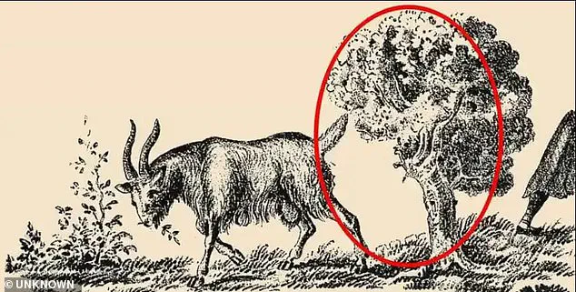 What appears to be a simple picture of a grazing goat actually has a woman’s face hiding in plain sight.