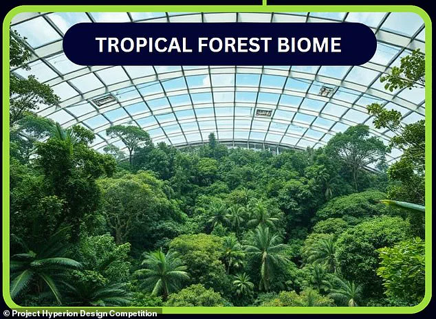 One shell houses a simulated tropical forest, boreal forest, and dry scrub biome, critical for both research and eventual terraforming on Proxima Centauri b.