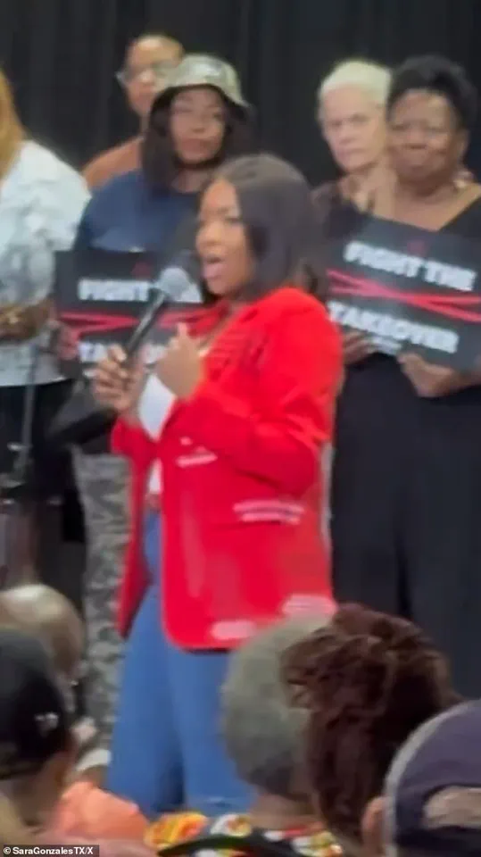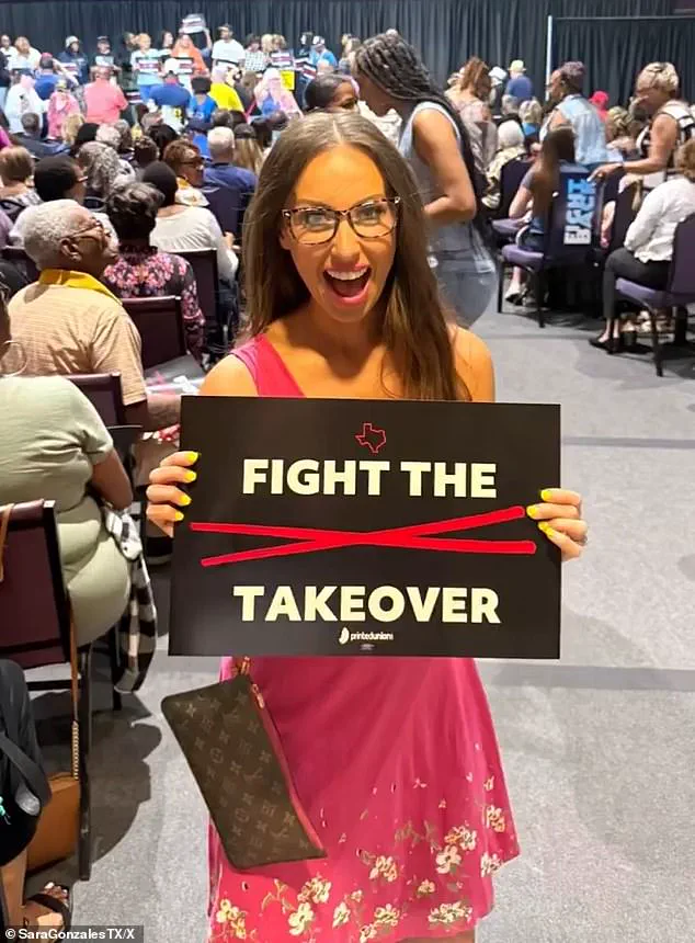 Gonzales, the host of ‘Sara Gonzales Unfiltered’ on conservative network BlazeTV, had arrived at the event under the radar, but her presence was quickly revealed when she leapt to her feet and began shouting over Crockett, her voice cutting through the room like a blade. ‘Jasmine!