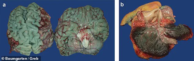 The team scoured their database of 15,820 autopsy records spanning two decades and identified 11 cases where organs such as the brain, heart, lungs, and pancreas exhibited a ‘blue-green,’ ‘greenish,’ or ‘turquoise’ hue.