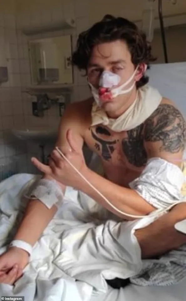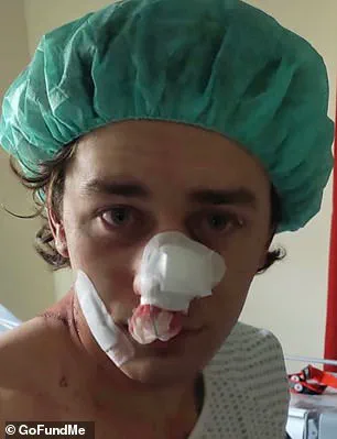 The young model (pictured), who is also a paramedic, sustained a critical gash in the middle of his face from a six-inch blade