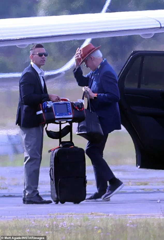 The device, reportedly a Propaq MD Air Medical Bag—a lightweight transport monitor and defibrillator—was visible as the couple prepared for their flight, raising questions about the former president’s current medical condition.