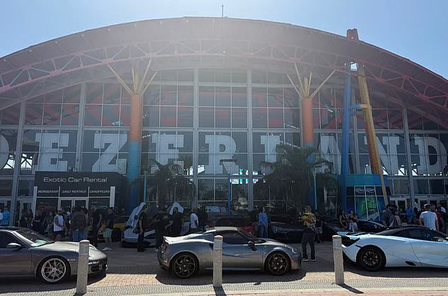One side of the car’s body still bears its original logo—a tongue symbol flanked by two women in boots and bikinis—directly beneath the name ‘Hollywood Star Cars.’ This emblem, a relic of a bygone era of automotive showmanship, now sits in the hands of South Florida developer and car enthusiast Gary Dezer.