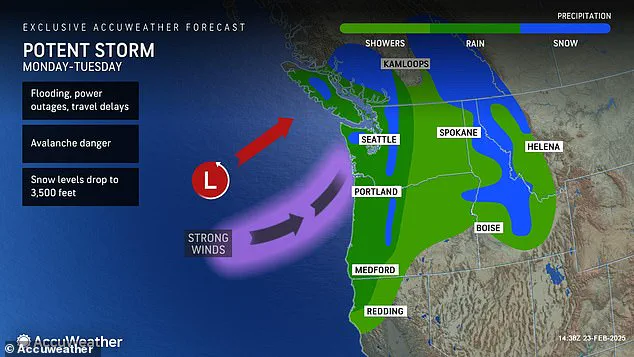 A powerful storm system is set to sweep into the Pacific Northwest starting Monday, bringing with it heavy rain and potentially damaging winds that could impact five US states: Washington, Oregon, California, Montana, and Idaho. Meteorologists have issued warnings for flash floods, fallen trees, and power outages as this weather event follows closely on the heels of a weekend storm triggered by an atmospheric river.