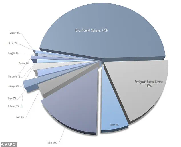 The report detailed that most UFOs are described as ‘orb,’ ’round,’ or ‘sphere,’ with some also appearing as polygons, triangles, or the now-famous ‘Tic Tac’ shape.