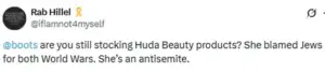 Antisemitism pays,’ one user wrote, referencing Sephora’s apparent decision to ‘drop’ Huda Beauty last month after a petition with over 33,000 signatures.