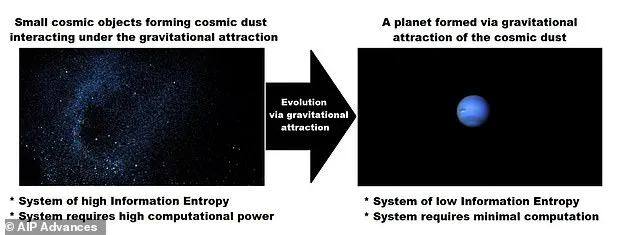 According to Dr Vopson, who is renowned for his work on formulating the principle that information constitutes a ‘physical, dominant, fifth state of matter,’ the pull of gravity could be seen as an effort by the cosmos to simplify its informational architecture.