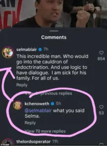 Blair’s comment quickly drew attention on social media, prompting her to disable comments on her accounts amid the growing furor.