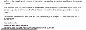Other signatories include charities such as the British Skin Foundation, Young Lives vs Cancer and Melanoma Focus, alongside a chorus of Britain’s leading dermatologists, GPs and public figures.