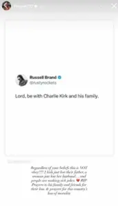 In the wake of the tragedy, Coursey, 23, who has millions of young followers on the platform, re-posted a message from disgraced British actor Russell Brand, who had prayed for Kirk’s family. ‘Lord, be with Charlie Kirk and his family,’ Brand wrote, a message that Coursey shared along with her own heartfelt tribute.