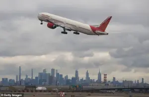 Dr Guido Carim Junior, a lecturer in aviation at Griffith University in Australia, says four aeroplane failures are more common than you think. Pictured, an Air India plane taking off from New York, January 27, 2024