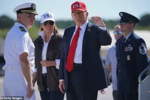 Truman in Norfolk, Virginia, where he pledged to secure pay raises for sailors and blamed Democrats for the ongoing crisis. ‘Do not worry about it,’ Trump assured those in attendance, promising to ‘get sailors their money back’ when the government reopens, a statement met with applause from the crew.