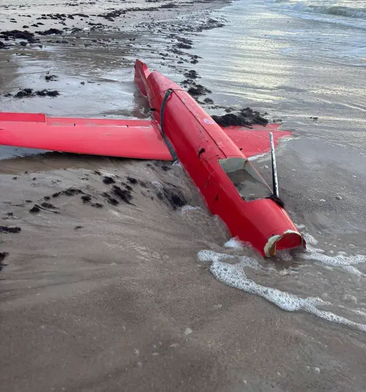 On a quiet beach in the western part of the country, the remains of a Russian ‘Herber’ drone were found.