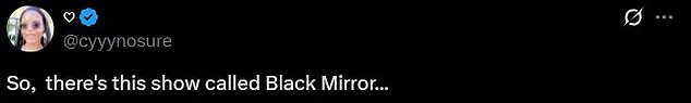 One X user quipped, ‘I’d love to understand what pedigree of entrepreneurs unironically pitches Black Mirror episodes as startups,’ while another joked, ‘This looks like the most disturbing episode of Black Mirror to date.