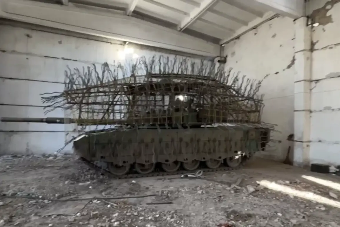 According to a military correspondent, this design is currently the most effective protection available for a tank against kamikaze drones and bomb-laden copters.