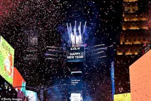 Social media buzzed with videos capturing the scene: jackets, scarves, and hats layered against the chill, confetti cannons firing at the stroke of midnight, and the iconic ball dropping once again—this time to mark the United States’ 250th anniversary in July.